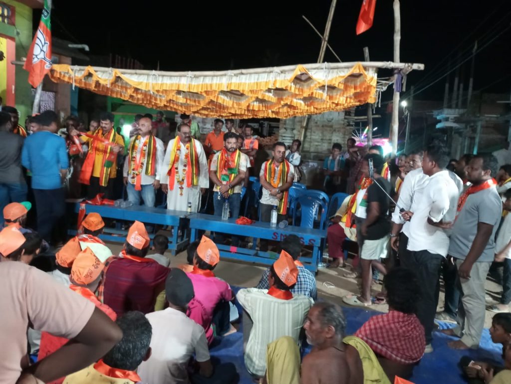 ସଞ୍ଜୟ କୁମାର ଜେନା,, ସକଳେଶ୍ୱର ଦାଶ, ରବି ସ୍ୱାଇଁ ଜଗନାଥ ଭୂୟାଁ, ଶମ୍ଭୁ ସାହୁ ପ୍ରମୁଖ ନେତା ମାନଙ୍କୁ ଏକ ବିରାଟ ଶୋଭାଯାତ୍ରା ରେ ଗ୍ରାମ ପରିକ୍ରମା କରି ଶ୍ରୀରାମ ଧ୍ୱନି ମାଧ୍ୟମ ରେ ବିଜେପି ଉତ୍ତରୀୟ ଓ ଟୋପି ପରିଧାନ କରିଥିଲେ |