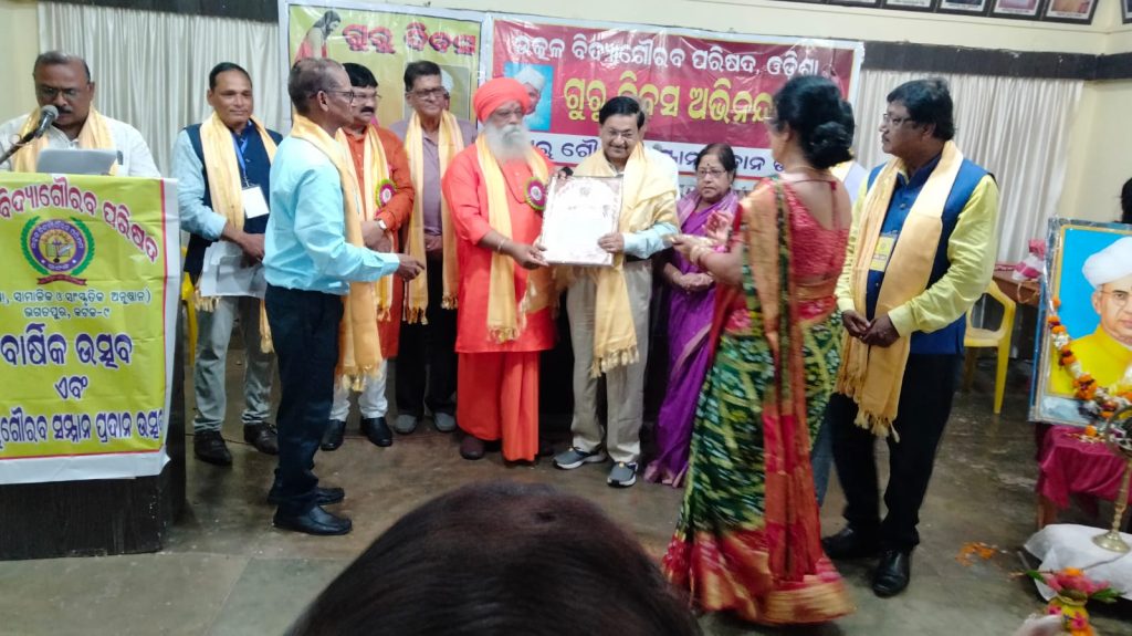 କଟକ ତା ୫.୯.୨୪ ରିଖ:ଉତ୍କଳ ବିଦ୍ୟା ଗୌରବ ପରିଷଦ ପକ୍ଷରୁ ଷଷ୍ଠ ବାର୍ଷିକ ଉତ୍ସବ ଅନୁଷ୍ଠିତ ଟାଉନ୍ ହଲ୍ ସ୍ଥିତ ଶ୍ରୀରାମଚନ୍ଦ୍ର ଭବନ ଠାରେ ପରିଷଦ ର ସଭାପତି ପ୍ରଫେସର ଡ. ନଟବର ଶତପଥୀ ଙ୍କ ସଭାପତିତ୍ଵ ରେ ଅନୁଷ୍ଠିତ ହୋଇଯାଇଅଛି । ଉକ୍ତ କାର୍ଯ୍ୟକ୍ରମ କୁ ଉଦଘାଟନ କରିଥିଲେ ସ୍ୱାମୀଜୀ ବ୍ରହ୍ମାନନ୍ଦ ସରସ୍ବତୀ ମହାରାଜ ଜୀ ।ମୁଖ୍ୟ ଅତିଥି ଭାବେ ବାରବାଟୀ କଟକ ର ପୂର୍ବତନ ବିଧାୟକ ଇଂ ମହମ୍ମଦ ମୋକିମ୍, ମୁଖ୍ୟବକ୍ତା ଭାବେ ଚିର ସନ୍ଧାନ ଖବରକାଗଜର ସଂପାଦକ ଡ. ପାର୍ଥସାରଥି ଅଜୟ ବାରିକ, ସମ୍ମାନୀତ ବକ୍ତା ଭାବେ ‘ ନୀଳଚକ୍ର’ ର ସଭାପତି ଶ୍ରୀମତୀ ନମିତା ପଣ୍ଡା ,