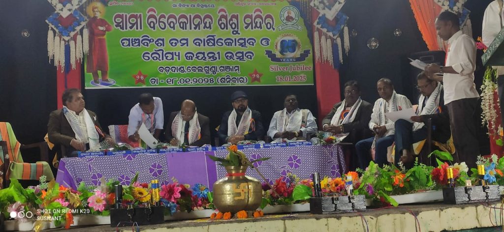 ବେଲଗୁଣ୍ଠା-19/1- ସ୍ଥାନୀୟ ସ୍ବାମୀ ବିବେକାନନ୍ଦ ଶିଶୁ ମନ୍ଦିର ରେ ଅନୁଷ୍ଠାନ ର ସଭାପତି ମାଧବ ଚନ୍ଦ୍ର ଆପଟ ଙ୍କ ସଭାପତିତ୍ବ ରେ 25 ତମ ବାର୍ଷିକ ଉତ୍ସବ ତଥା ରୌପ୍ୟ ଜୟନ୍ତୀ ପାଳନ ହୋଇ ଯାଇଅଛି। ମୁଖ୍ୟ ଅତିଥି ଙ୍କ ସହ ସମସ୍ତ ଅତିଥି ଦୀପ ପ୍ରଜ୍ବଳନ କରିଥିଲେ। ଅନୁଷ୍ଠାନ ର ଆଇନ ପରାମର୍ଶ ଦାତା ତଥା ବରିଷ୍ଟ ଆଇନଜୀବି ସମ୍ମାନିତ ଅତିଥି ଭାବେ ଯୋଗ ଦେଇ ଯୁଗେ ଯୁଗେ ସ୍ବାମୀ ବିବେକାନନ୍ଦ ରହିବେ ବୋଲି ଉଦବୋଧନ ଦେଇଥିଲେ। ରୋଟାରିୟାନ ତଥା ସମାଜସେବୀ ରଞ୍ଜିତ ବାରିକ ସମ୍ମାନୀତ ଅତିଥି ଭାବେ ଯୋଗ ଦେଇ ସ୍ବାମୀ ଜି ଙ୍କ ଆଦର୍ଶ ରେ ଚାଲିଥିବା ଏହି ଅନୁଷ୍ଠାନ ଆହୁରି ଆଗକୁ ବଢ଼ୁ ବୋଲି ମତ ପ୍ରଦାନ କରିଥିଲେ। ସ୍ଵତନ୍ତ୍ର ଅତିଥି ଭାବେ