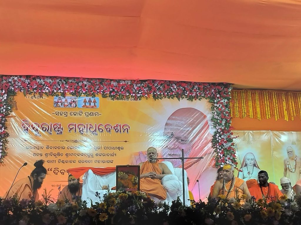ଅନୁଗୁଳ :(ଦିଲୀପ କୁମାର ଚୋପଦାର ) ତାଳଚେର ଦେଉଳଦେବା ଦୁର୍ଗା ମଣ୍ଡପ ପଡିଆ ରେ ବିଶାଳ ହିନ୍ଦୁ ରାଷ୍ଟ୍ର ମହା ଅଧିବେଶନ ଅନୁଷ୍ଠିତ ହୋଇଯାଇଛି, ଏଥିରେ ପୁରି ଗୋବର୍ଧନ ପିଠା ଧୀଶ ଜଗତ ଗୁରୁ ଶଙ୍କରାଚାର୍ଯ୍ୟ ନିଶ୍ଚଳାନନ୍ଦ ସରସ୍ବତୀ ମହାଭାଗ ଯୋଗଦେଇ ଦିବ୍ୟ ସନ୍ଦେଶ ପ୍ରଦାନ କରିଛନ୍ତି, |