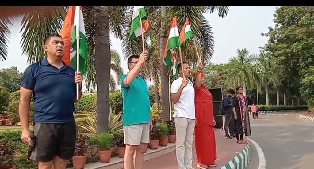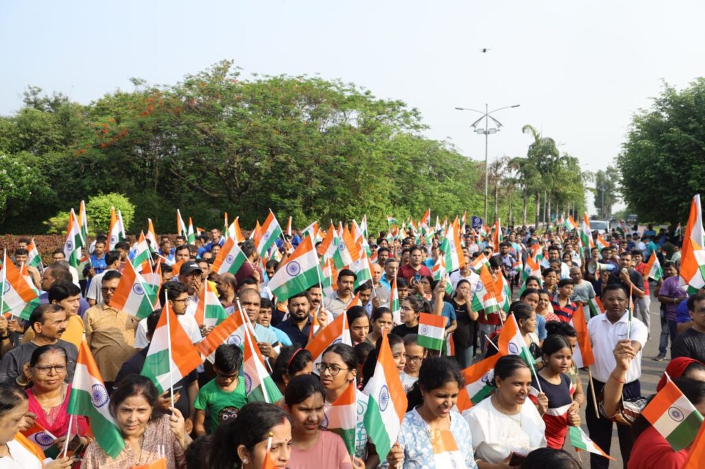 ଜିନ୍ଦଲ ଟାଉନସିପ ପରିସରରୁ ଆରମ୍ଭ ତ୍ରିରଙ୍ଗା ଶୋଭାଯାତ୍ରା, ସ୍ମାରକୀ ଜାତୀୟ ପତାକା ସ୍ତମ୍ଭ ନିକଟରେ ପହଞ୍ଚିଥିଲା। ଏଥିରେ ଶତାଧିକ କର୍ମଚାରୀ, ସେମାନଙ୍କ ପରିବାର,