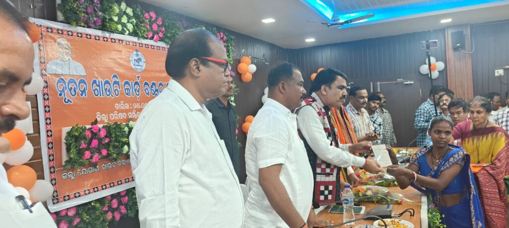 ନବରଙ୍ଗପୁର ତା ୨୪.୫.୨୦୨୫: ଆଜି ସ୍ଥାନୀୟ ଜିଲ୍ଲା ପରିଷଦ ସଭାଗୃହରେ ନୂତନ ଖାଉଟି କାର୍ଡ ବଣ୍ଟନ କାର୍ଯ୍ୟକ୍ରମ ଅନୁଷ୍ଠିତ ହୋଇଯାଇଛି। ଏହି କାର୍ଯ୍ୟକ୍ରମରେ ମୁଖ୍ୟ ଅତିଥି ରୂପେ ମାନ୍ୟବର ବିଦ୍ୟାଳୟ ଓ ଗଣଶିକ୍ଷା ବିଭାଗ ମନ୍ତ୍ରୀ ନିତ୍ୟାନନ୍ଦ ଗଣ୍ଡ ଯୋଗ ଦେଇ ଜିଲ୍ଲା ର ବିଭିନ୍ନ ବ୍ଲକ ରୁ ଆସିଥିବା ୪୬ ଜଣଙ୍କୁ ନୂତନ ରାସନ୍ କାର୍ଡ ପ୍ରଦାନ କରିଥିଲେ।ଏହି କାର୍ଯ୍ୟକ୍ରମରେ ମାନ୍ୟବର ବିଧାୟକ ନବରଙ୍ଗପୁର ଗୌରୀ ଶଙ୍କର ମାଝୀ,ମାନ୍ୟବର