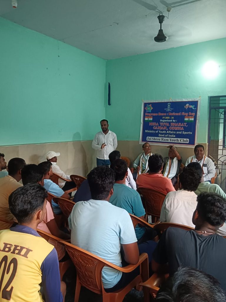 ଅତିଥିମାନେ ଜାତୀୟ ପ୍ରତକାର ଓ ତିନୋଟି ରଙ୍ଗର ମହତ୍ବ ବିଷୟରେ ଅଭିଭାଷଣ ରଖିଥିଲେ ଏବଂ ଶେଷରେ ଯୁବ ସଂଘ ପକ୍ଷରୁ ଧନ୍ୟବାଦ ଅର୍ପଣ କରାଯାଇଥିଲା। ଏଥିରେ ଡି ଶ୍ୟାମବାବୁ ଦୋରା, ବିଚିତ୍ର ନାୟକ, ପ୍ରହଲ୍ଲାଦ ବେହେରା, ଦେବରାଜ ବେହେରା , ନାଗେଶ୍ବର ଦୋରା,ଗଣେଶ ପଣ୍ଡା, ଅଭିରାମ ସ୍ବାଇଁ, ଗିରିଜା ଶଙ୍କର ମହାପାତ୍ର, ଦିନେଶ ନାୟକ , ଆକାଶ ନାୟକ, ଗଜାନନ ଗୈଡ , ବୁଲୁ ପ୍ରଧାନ, ନିରଖୀ ପ୍ରଧାନ ଅନେକ ଯୁବ ଗୋଷ୍ଠୀ ଉପସ୍ଥିତ ଥିଲେ।