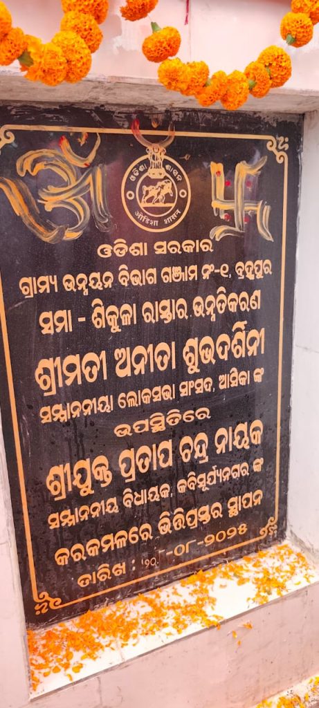 କବିସୂର୍ଯ୍ୟ ନଗର ନିର୍ବାଚନ ମଣ୍ଡଳୀ ଅନ୍ତର୍ଗତ ପୁରୁଷୋତ୍ତମପୁର ବ୍ଳକର ଶିକୁଳା ଠାରୁ ସମା ରାସ୍ତା ନିମନ୍ତେ ଆରଡ଼ି ବିଭାଗ ପକ୍ଷରୁ ତିନିକୋଟି ଅଠର ଲକ୍ଷ ସତାଅସି ହଜାର ଟଙ୍କା ବ୍ୟୟ ଅଟକଳ ରେ ଏହିଉନ୍ନତି କରଣ ରାସ୍ତା କାମ କରାଯିଵା ନିମନ୍ତେ ଟେଣ୍ଡର କରାଯାଛି | ଏବଂ ଚିଙ୍ଗୁଡ଼ି ଘାଇ ଠାରୁ ଭେଜିପୁଟ ଭାୟା ଧୋବାପଲି ପର୍ଯ୍ୟନ୍ତ ରାସ୍ତା ନିମନ୍ତେ ତିନିକୋଟି ନ ଲକ୍ଷ ତିନି ହଜାର ଟଙ୍କା ବ୍ୟୟ ବରାଦ ହୋଇଛି | ଯାହାକୁ କବିସୂର୍ଯ୍ୟନଗର ବିଧାୟକ ପ୍ରତାପ ଚନ୍ଦ୍ର ନାୟକ ଶିଳାନ୍ୟସ କରିଛନ୍ତି | ଏହିରାସ୍ତା ର ଅବସ୍ଥା ଅତ୍ୟନ୍ତ ଶୋଚନୀୟ ଅବସ୍ଥା ରେ ରହିଥିବାରୁ ଓ ଯାତାୟାତ ରେ ଘୋର ଅସୁବିଧା ହେଉଥିବାର ଲକ୍ଷ କରି ରାସ୍ତା ଦ୍ୱାରା ଲୋକଙ୍କ ଗମନା, ଗମନ ଏବଂ କମ ରାସ୍ତାରେ ଗନ୍ତବ୍ୟ ସ୍ଥଳକୁ ପହଞ୍ଚି ପାରିବା ଭଳି ବ୍ୟବସ୍ତା କରାଯାଇଛି | ଏହି କାର୍ଯ୍ୟକ୍ରମ ରେ ବିଧାୟକ ଙ୍କ ସହ ଯୁବନେତା ସୀତାରାମ ପାଣିଗ୍ରାହୀ, ବିଧାୟକ ପ୍ରତିନିଧି ମନୋଜ ଦାସ, ଗାଁର ନେତା ପ୍ରଶାନ୍ତ କୁମାର ଚର୍ଚ୍ଚି, ବହୁ ବିଜେପି ନେତା, କର୍ମୀ,ଏମ୍ବିକେ, ସିଆରପି, ମହିଳା ସଙ୍ଘ, ଓ ସ୍ଥାନୀୟ ଜନସାଧାରଣ, ବିଭଗୀୟ କନିଷ୍ଟ ଯନ୍ତ୍ରୀ ଲୋକନାଥ ନାୟକ ଓ ଠିକାଦାର ଶ୍ରୀମତୀ ସୁଚିତ୍ରା ପଣ୍ଡା ପ୍ରମୁଖ ଉପସ୍ଥିତ ଥିଲେ |