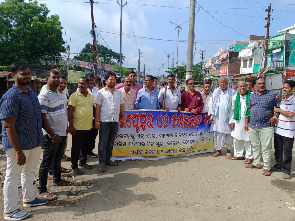 ଗଂଜାମ ଜିଲ୍ଲା ଶେରଗଡ ବ୍ଲକ୍ କୁ ଏନ.ଏ.ସି ମାନ୍ୟତା ଦାବିରେ ୧୨ ଘଣ୍ଟିଆ ବନ୍ଦ ଡାକରା l ଶେରଗଡ଼ର ବିଭିନ୍ନ ସଂଘ ପକ୍ଷରୁ ଏହି ବନ୍ଦ ଡାକରା ଦିଆଯାଇଛି l ଜରୁରୀ କାଳୀନ ସେବାକୁ ବାଦ୍ ଦେଇ ସକାଳୁ ସମସ୍ତ ଦୋକାନ ବଜାର ସହ ଗାଡ଼ି ଚଳାଚଳ ମଧ୍ୟ ବନ୍ଦ ରହିଛି l ପ୍ରକାଶ ଥାଉକି ଶେରଗଡ଼ ବ୍ଲକ ୨୨ ପଞ୍ଚାୟତକୁ ନେଇ ଗଠିତ ହୋଇଥିବା ବେଳେ ଏଠି ୧୫ ହାଜରରୁ ଉର୍ଦ୍ଧ ଲୋକ ବସବାସ କରୁଛନ୍ତି l ତେବେ ସହର ଉନ୍ନତି କରଣ ପାଇଁ ପୂର୍ବ ସରକାର ନିର୍ବାଚନ ପୂର୍ବରୁ ଶେରଗଡ଼ ବ୍ଲକ୍ କୁ ଏନ.ଏ.ସି ଘୋଷଣା କରିଥିଲେ l କିନ୍ତୁ ଏହା କାର୍ଯକାରି ହୋଇ ନଥିଲା l