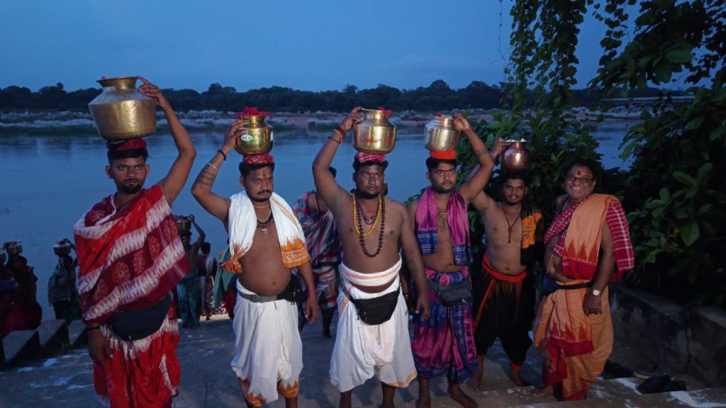 …. ବିଜେ ପ୍ରତିମାକୁ ବାଜା ବାଜଣା ରେ ସ୍ନାନ ମଣ୍ଡପକୁ ଅଣାଯାଇ ବ୍ରାହ୍ମଣ ଙ୍କ ଦ୍ୱାରା ସେବାୟତ ଙ୍କ ଉପସ୍ଥିତି ଓ ସହଯୋଗ ରେ ସହସ୍ର କୁମ୍ଭାଭିଷେକ କଳସିକୁ ମାଆଙ୍କୁ ଶ୍ରୀସୃକ୍ତ ରେ ସ୍ନାନ କରାଯାଇ ପୂଜା କରା ଗଲା|ଏହାପରେ ବରୁଣ ପୂଜା, ଚଣ୍ଡୀପାଠ ଓ ହୋମ ଆଦିସମସ୍ତ କାର୍ଯ୍ୟ ରୀତିକାନ୍ତି ଅନୁସାରେ କରାଯିବ |.