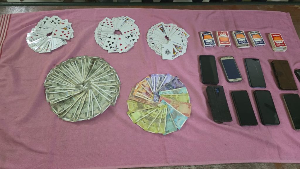 ବେଲଗୁଣ୍ଠା -୨୧/୯-ପାର୍ବଣ ଋତୁର ପଦାର୍ପଣରେ ଗଞ୍ଜାମ ଜିଲ୍ଲାର ବିଭିନ୍ନ ସ୍ଥାନରେ ଜୁଆଡି ମାନଙ୍କ ଜିଲାର ଆମର ଜମିଲାଣି ।ଏ ପରି ପରିସ୍ଥିତି ବେଆଇନ୍ ଜୁଆଖେଳକୁ ନିୟନ୍ତ୍ରଣ କରିବା ପାଇଁ ପୋଲିସ ତୀକ୍ଷ୍ଣ ନଜର ରହିଛି ।ଏପରି ସ୍ଥଳେ, ଆଜି ସଂଧ୍ୟା ପେଟ୍ରୋଲିଂ ସମୟରେ ବେଲଗୁଣ୍ଠା ଥାନା ଅନ୍ତର୍ଗତ ମଙ୍ଗଳପୁର ଗ୍ରାମରେ ଏକ ଜୁଆ ଆଡ୍ଡା ଉପରେ ଚଢାଉ କରି ସେଠାରୁ ୧୦ ଜଣଙ୍କୁ ଗିରଫ କରିବା ସହିତ ୨୨୭୦୦ ଟଙ୍କା,୩ ଟି ବାଇକ୍, ଗୋଟିଏ ସ୍କୁଟର,୧୦ଟି ମୋବାଇଲ,୮ ଟି ତାସ୍ ମୁଠା ଜବତ କରି ୪୬୦/୨୫ ରେ ଏକ ମାମଲା ରୁଜ୍ଜୁ କରାଯାଇଥିବା ଥାନାଧିକାରୀ ରେବତୀ ଶବର ସୂଚନା ଦେଇଛନ୍ତି ।