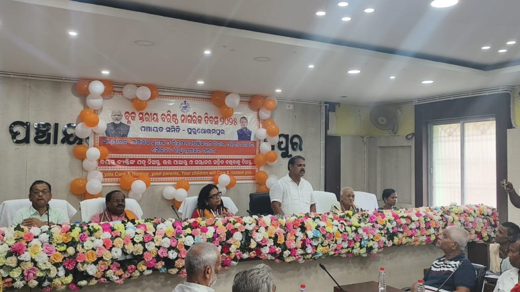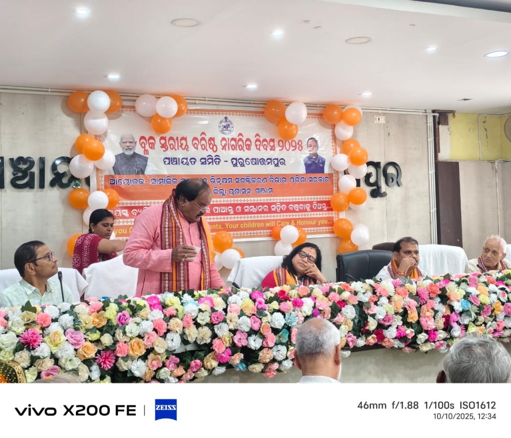 ପୁରୁଷୋତ୍ତମପୁର ବ୍ଲକ ବୈଠକ ହଲରେ ଆଜି ଅନ୍ତର୍ଜାତୀୟ ବରିଷ୍ଟ ନାଗରିକ ଦିବସ ବ୍ଳକ ଅଧକ୍ଷା ପିଙ୍କି ବେହେରା ଓ ବିଡ଼ିଓ ଶରତ ଚନ୍ଦ୍ର ପାତ୍ର ଙ୍କ ମିଳିତ ସଂଯୋଜନା ରେ ଆରମ୍ଭ କରାଯାଇଥିଲା | ଏହି କାର୍ଯ୍ୟକ୍ରମ ରେ ମୁଖ୍ୟ ଅତିଥି ଭାବେ ଆସ୍କା ଏମପି ଅନୀତା ଶୁଭ ଦର୍ଶିନୀ, ଖଲ୍ଲିକୋଟ ବିଧାୟକ ପୂର୍ଣ୍ଣ ଚନ୍ଦ୍ର ସେଠୀ, ଓ କବିସୂର୍ଯ୍ୟ ନଗର ବିଧାୟକ ପ୍ରତାପ ଚନ୍ଦ୍ର ନାୟକଙ୍କ ସହିତ ବ୍ଳକ ଅଧକ୍ଷା ଏବଂ ବିଡ଼ିଓ ମଞ୍ଚାସିନ ଥିଲା