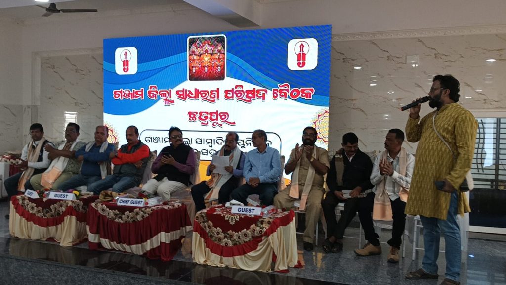 ଗଞ୍ଜାମ ଜିଲ୍ଲା ସାମ୍ବାଦିକ ୟୁନିୟନର ସାଧାରଣ ପରିଷଦ ବୈଠକ ଛତ୍ରପୁର ନିକଟସ୍ଥ ମା ରାମଚଣ୍ଡୀ ପୀଠରେ ଜିଲ୍ଲା ସଭାପତି ସଦାଶିବ ପଣ୍ଡାଙ୍କ ଅଧ୍ୟକ୍ଷତାରେ ଅନୁଷ୍ଠିତ ହୋଇଯାଇଛି।ଏହି ବୈଠକରେ ମୁଖ୍ୟ ଅତିଥି ଭାବେ ସ୍ଥାନୀୟ ବିଧାୟକ କୃଷ୍ଣଚନ୍ଦ୍ର ନାୟକ ଯୋଗଦେଇ ସାମ୍ବାଦିକମାନେ ସମାଜର ଜାଗୃତ ପ୍ରହରୀ ଭାବେ କାର୍ଯ୍ୟ କରୁଥିବା ଉଲ୍ଲେଖ କରିଥିଲେ। ସେ କହିଥିଲେ ଯେ ସାମ୍ବାଦିକମାନଙ୍କର ପେନସନ, ସୁରକ୍ଷା, ପ୍ରେଷ୍ଟେଜ୍, ଅଧିସ୍ୱୀକୃତି ଓ ବୀମା ଯୋଜନାରେ ମାତା–ପିତାଙ୍କୁ ଅନ୍ତର୍ଭୁକ୍ତ କରିବା ଭଳି ଦାବୀଗୁଡ଼ିକୁ ସେ ବ୍ୟକ୍ତିଗତ ଭାବେ ମୁଖ୍ୟମନ୍ତ୍ରୀଙ୍କୁ ଭେଟି ଅବଗତ କରାଇବା ସହ ବିଧାନସଭାରେ ଉଠାଇବେ ବୋଲି ପ୍ରତିଶ୍ରୁତି ଦେଇଥିଲେ।ରାଜ୍ୟ ସଭାପତି ପ୍ରସନ୍ନ ମହାନ୍ତି କହିଥିଲେ ଯେ ପେନସନ, ସୁରକ୍ଷା, ପ୍ରେଷ୍ଟେଜ୍ ଓ ଅଧିସ୍ୱୀକୃତି ହେଉଛି ଓୟୁଜେର ମୂଳ ଦାବୀ। ପୂର୍ବତନ ସରକାର ଏହାକୁ ଗୁରୁତ୍ୱ ନଦେଇଥିବା ବେଳେ ବର୍ତ୍ତମାନ ସରକାର ଦାବୀ ପୂରଣର ପ୍ରତିଶ୍ରୁତି ଦେଇଥିଲେ। ସରକାର ଆସିବାର ୧୫ ମାସ ହେଲାଣି, କିନ୍ତୁ ଦାବୀ କାର୍ଯ୍ୟକାରୀ ହୋଇନଥିବାରୁ ଓୟୁଜେ ରାଜ୍ୟସ୍ତରୀୟ ଆନ୍ଦୋଳନକୁ ଓଲ୍ହାଇବ ବୋଲି ସେ ଚେତାବନୀ ଦେଇଥିଲେ। ସାମ୍ବାଦିକମାନେ ଜୀବନ ଓ ମୃତ୍ୟୁ ସମୟରେ କିପରି ଦୁର୍ଦ୍ଦଶାର ସମ୍ମୁଖୀନ ହେଉଛନ୍ତି, ସେଥିର ଉଦାହରଣ ମଧ୍ୟ ସେ ଉପସ୍ଥାପନ କରିଥିଲେ।ବିଜେପି କେନ୍ଦ୍ରୀୟ ମିଡିଆ ସେଲର ସଂଯୋଜିକା ସୁଜାତା ସାବତ ସାମ୍ବାଦିକମାନଙ୍କ ଦାବୀ ଯଥାର୍ଥ ଓ ନ୍ୟାୟସଂଗତ ବୋଲି କହିବା ସହ ସରକାର ନିଶ୍ଚିତ ଭାବେ ଏହା ପୂରଣ ପାଇଁ ପ୍ରୟାସ ନେବେ ବୋଲି ଆଶା ପ୍ରକାଶ କରିଥିଲେ।ଏହି ଅବସରରେ ଜାତୀୟ କାର୍ଯ୍ୟକାରିଣୀ ସଦସ୍ୟ କିଷାନ ରାଉତ, ନୟାଗଡ ଜିଲ୍ଲା ସଭାପତି ଆଚାର୍ଯ୍ୟ ବିଶ୍ୱରଞ୍ଜନ, ସମାଜସେବୀ ସମାପ୍ତି ପଣ୍ଡା, ଜିଲ୍ଲା ସାଧାରଣ ସମ୍ପାଦକ ସନ୍ତୋଷ ମିଶ୍ର ଜିଲ୍ଲା ୟୁନିୟନର ବାର୍ଷିକ ବିବରଣୀ ପାଠ କରିଥିଲେ। ପୂର୍ବତନ ଓୟୁଜେ ସଭାପତି ପ୍ରକାଶଚନ୍ଦ୍ର ପାଣିଗ୍ରାହୀ, ଉପଦେଷ୍ଟା ରବୀନ୍ଦ୍ର ପଣ୍ଡା ଓ ହରିହର ପାତ୍ର ସାମ୍ବାଦିକମାନଙ୍କ ସମସ୍ୟା ଓ ସମାଧାନ ଉପରେ ମତ ରଖିଥିଲେ।ସମ୍ପାଦକ ମେଘନାଦ ଦାସ ସ୍ୱାଗତ ଭାଷଣ ଦେଇଥିବା ବେଳେ ଉପସଭାପତି ରାଜଗୋପାଳ ପାଢ଼ୀ ଅତିଥି ପରିଚୟ ପ୍ରଦାନ କରିଥିଲେ। ଜାତୀୟ କାଉନ୍ସିଲ ସଦସ୍ୟ ବାଳକୃଷ୍ଣ ପଟ୍ଟନାୟକ ଓ ରାଜ୍ୟ କାର୍ଯ୍ୟକାରିଣୀ ସଦସ୍ୟ ଅଶୋକ କୁମାର ମାହାଙ୍କୁଡ ମଞ୍ଚାସୀନ ଥିଲେ।ଏହି ଅବସରରେ ବିଭିନ୍ନ ବ୍ୟକ୍ତିତ୍ୱଙ୍କୁ ସମ୍ବର୍ଦ୍ଧିତ କରାଯାଇଥିବା ସହ ଜିଲ୍ଲା ଓ ରାଜ୍ୟର ଦିବଙ୍ଗତ ସାମ୍ବାଦିକମାନଙ୍କ ପାଇଁ ୨ ମିନିଟ ନିରବ ପ୍ରାର୍ଥନା କରାଯାଇଥିଲା। ଦୂତୀ କୃଷ୍ଣ ପଣ୍ଡା ଧନ୍ୟବାଦ ଜ୍ଞାପନ କରିଥିଲେ।