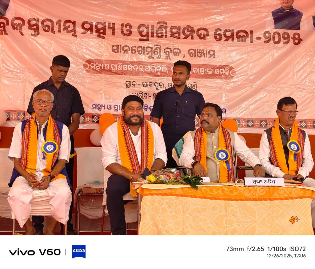 ଗଞ୍ଜାମ, ୨୬/୧୨( :ପାଟପୁର ଗାନ୍ଧୀ ଛକ ନିକଟ ସାରଙ୍ଗ ପଡିଆ ଠାରେ ବ୍ଳକସ୍ତରୀୟ ମତ୍ସ୍ୟ ଓ ପ୍ରାଣୀସମ୍ପଦ ମେଳା ଅନୁଷ୍ଠିତ ହୋଇଯାଇଛି । ପାଟପୁର ପ୍ରାଣୀ ଚିକିତ୍ସା ଅଧିକାରୀ ଡା. ପ୍ରବୀଣ କୁମାର ସାହୁ ଙ୍କ ସଂଯୋଜନାରେ ଆୟୋଜିତ ମେଳାରେ ମତ୍ସ୍ୟ ଓ ପ୍ରାଣୀସମ୍ପଦ ବିକାଶ ଏବଂ ଅଣୁ କ୍ଷୁଦ୍ର ଓ ମଧ୍ୟମ ଉଦ୍ୟୋଗ ମନ୍ତ୍ରୀ ମାନ୍ୟବର ଗୋକୁଳାନନ୍ଦ ମଲ୍ଲିକ ମୁଖ୍ୟ ଅତିଥି ଭାବେ ଯୋଗଦେଇ ଗ୍ରାମାଞ୍ଚଳ ରେ କୃଷି ଓ କୃଷକ ମାନଙ୍କ ର ବିକାଶ ହେଲେ ଦେଶ ତଥା ରାଜ୍ୟ ର ଅର୍ଥନୀତି ସୁଦୃଢ଼ ହେବ ସାଧାରଣ ଲୋକଙ୍କ ବିକାଶ ଆର୍ଥିକ ସ୍ଥିତି ମଜବୁତ୍ ହୋଇପାରିବ।