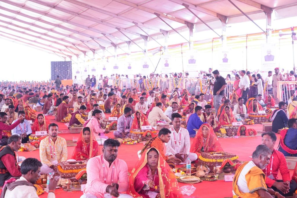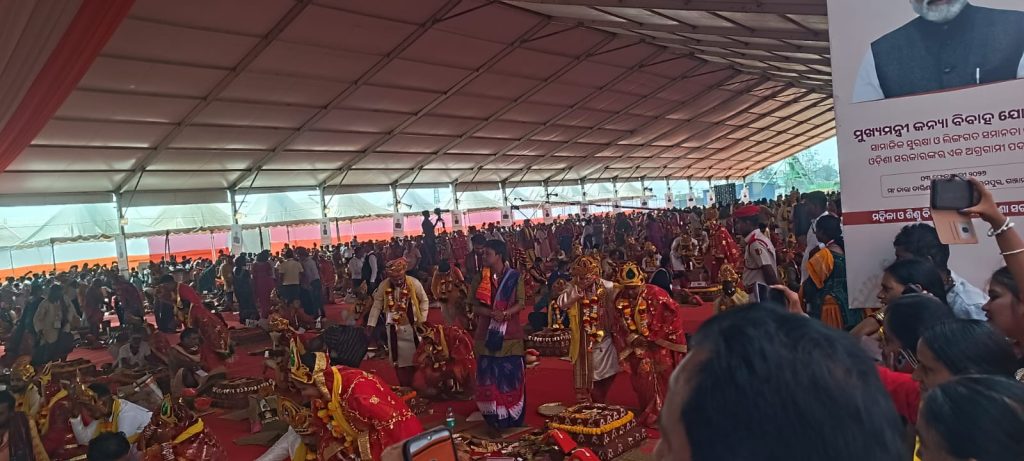 ଗଞ୍ଜାମ ::ଓଡ଼ିଶାରେ ପ୍ରଥମ ଥର କରି ଗଞ୍ଜାମ ଜିଲାର ପ୍ରସିଦ୍ଧ ଶକ୍ତିପୀଠ ମା’ ତାରାତାରିଣୀଙ୍କ ପୀଠରୁ ମୁଖ୍ୟମନ୍ତ୍ରୀ ମୋହନ ଚରଣ ମାଝୀ ‘ମୁଖ୍ୟମନ୍ତ୍ରୀ କନ୍ୟା ବିବାହ ଯୋଜନାର’ ଶୁଭାରମ୍ଭ କରିଛନ୍ତି । ପଣ୍ଡିତ ବ୍ରାହ୍ମଣଙ୍କ ବେଦ ମନ୍ତ୍ରରେ ବିବାହ ମଣ୍ଡପ ରେ ଦଳ, ଦଳ ହୋଇ ବରକନ୍ୟ ବସି ଏହି ଗଣ ବିବାହକରୁଥିବାର ନିଆରା ମଜା ସମସ୍ତ ଦର୍ଶକ ଙ୍କୁ ଅଭିଭୂତ କରିଥିଲା |