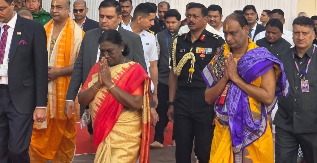 ପୁରୀ, ୪/୨-ବୁଧବାର ସକାଳୁ ମହାମହିମ ରାଷ୍ଟ୍ରପତି ଦ୍ରୌପଦୀ ମୁର୍ମୁ ଶ୍ରୀମନ୍ଦିର କୁ ଯାଇ ଶ୍ରୀବିଗ୍ରହ ଙ୍କୁ ପବିତ୍ର ଦର୍ଶନ କରିଛନ୍ତି| ମହାମହିମ ଶ୍ରୀମନ୍ଦିର ସିଂହଦ୍ୱାରରେ ପହଞ୍ଚିବା ପରେ ତାଙ୍କୁ ଗଜପତି ମହାରାଜା ଦିବ୍ୟସିଂହ ଦେବ, ମାନ୍ୟବର ରାଜ୍ୟପାଳ ଡ. ହରିବାବୁ କମ୍ଭମପତି, ମାନ୍ୟବର ମୁଖ୍ୟମନ୍ତ୍ରୀ ମୋହନ ମାଝୀ, ବରିଷ୍ଠ ସେବାୟତ, କୌଳିକ ପଣ୍ଡା ଏବଂ ଶ୍ରୀମନ୍ଦିର ମୁଖ୍ୟ ପ୍ରଶାସକ ଡ. ଅରବିନ୍ଦ ପାଢ଼ୀ ସ୍ବାଗତ କରିଥିଲେ।ସମସ୍ତ ନିଯୋଗର ସେବକବନ୍ଧୁଙ୍କ ସହଯୋଗରେ ନୀତିକାନ୍ତି ସମୟୋଚିତ ଭାବେ ସମାପନ ହୋଇଥିଲା |