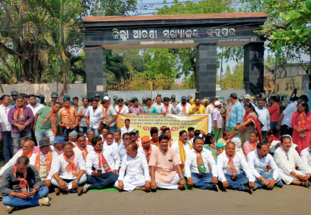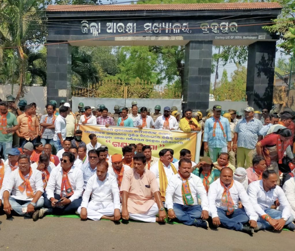 ବ୍ରହ୍ମପୁର , ୦୪/୦୩ – ( ପ୍ରଫୁଲ୍ଲ ସାବତ ) -:- ବିଜେପି ଯୁବମୋର୍ଚ୍ଚା କାର୍ଯ୍ୟକର୍ତ୍ତାଙ୍କ ଉପରେ ଯୋଜନାବଦ୍ଧ ଆକ୍ରମଣରେ ପୁଲିସ୍ ବିରୋଧରେ ବିଭିନ୍ନ ଥାନାରେ ଦିଆଯାଇଥିବା ଏତଲା ପଞ୍ଜିକରଣ ନହେବା ପ୍ରତିବାଦରେ ଆଜି ଗଞ୍ଜାମ ଜିଲ୍ଲା ଭାରତୀୟ ଜନତା ଯୁବମୋର୍ଚ୍ଚା ପକ୍ଷରୁ ଜିଲ୍ଲା ଯୁବମୋର୍ଚ୍ଚା ସଭାପତି ଶିବ ଶଙ୍କର ନାୟକଙ୍କ ନେତୃତ୍ବରେ ବ୍ରହ୍ମପୁର ଏସ୍.ପି କାର୍ଯ୍ୟାଳୟ ସମ୍ମୁଖରେ “ବିକ୍ଷୋଭ ପ୍ରଦର୍ଶନ କରିବା ସହ ଗଣଧାରଣାରେ” ବସିଥିଲେ । ରାଜ୍ୟ ସରକାର ଏବଂ ପୋଲିସ ପ୍ରଶାସନ ବିରୁଦ୍ଧରେ ବିଜେପି କାର୍ଯ୍ୟକର୍ତ୍ତା ମାନେ ନାରାବାଜି କରିବା ସହ ରାଜ୍ୟର ପୋଲିସ ଡ଼ିଜି,ଭୁବନେଶ୍ୱର-କଟକ ପୋଲିସ କମିଶନର ଏବଂ ଭୁବନେଶ୍ବର ଡ଼ିସିପିଙ୍କ ବିରୁଦ୍ଧରେ ଏତଲା ଦାଏର କରି ଦୃଢ଼ କାର୍ଯ୍ୟାନୁଷ୍ଠାନ ନେବାପାଇଁ ଦାବୀ କରିବା ସହ ମିଛ କେଶରେ ବିଭିନ୍ନ ଦଫା ଲଗାଇ ଜେଲରେ ରଖିଥିବା ଯୁବମୋର୍ଚ୍ଚା କାର୍ଯ୍ୟକର୍ତ୍ତାଙ୍କ କେଶ୍ ପ୍ରତ୍ୟାହାର କରି ସେମାନଙ୍କୁ ନିର୍ଦ୍ଦୋଷରେ ଖଲାସ କରିବା ପାଇଁ ଦାବୀ ଜଣାଇ ଦୀର୍ଘ ସମୟ ଧରି ଏସ୍.ପି ଅଫିସ ସମ୍ମୁଖରେ ବିକ୍ଷୋଭ କରିବା ସହ ଗଣଧାରଣାରେ ବସିଥିଲେ ।
