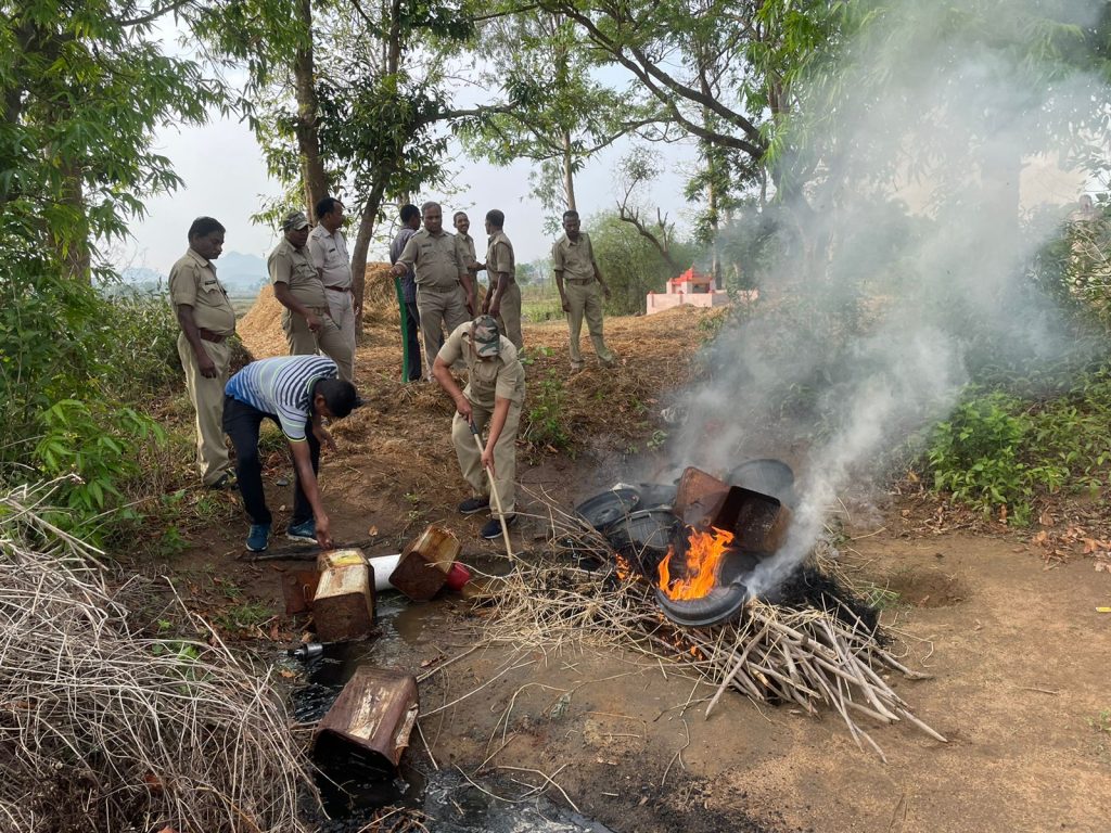 ବେଲଗୁଣ୍ଠା, 29/04, ଆଜି ଗାଙ୍ଗପୁର ପୋଲିସ୍ ଗାଙ୍ଗପୁର ଥାନା ଅନ୍ତର୍ଗତ ନଣ୍ଡାଜୁଆଳି ଏବଂ ଝରପାରି ନିକଟସ୍ଥ ମରାଠୀବସାରେ ଦୁଇ ବେଆଇନ୍ ଦେଶୀମଦ ଭାଟି ଉପରେ ଚଢାଉ କରି ବିପୁଳ ପରିମାଣର ରନ୍ଧା ମଦ ଜବତ କରିବା ସହ ପୋଚ ନଷ୍ଟ କରିଥିବା ଜଣା ପଡିଛି I ଗାଙ୍ଗପୁର ଥାନା ଏସ୍ଆଇ ଶୁଭ୍ରଜିତ ସାମନ୍ତରାୟଙ୍କ ସୂଚନା ପ୍ରକାରେ ଆଜି ବିଶ୍ୱସ୍ତ ସୂତ୍ରରୁ ଖବର ପାଇଁ ଗାଙ୍ଗପୁର ପୋଲିସ୍ ସଦଳବଳେ ନଣ୍ଡାଜୁଆଳି ଏବଂ ମରାଠୀବସାରେ ଥିବା ବେଆଇନ୍ ଦେଶୀ ମଦଭାଟି ଉପରେ ଚଢ଼ାଉ କରି ଉଭୟ ସ୍ଥାନରୁ 400 ଲିଟର୍ ଦେଶୀମଦ ଜବତ କରିବା ସହ 1500 ଲିଟର୍ ପୋଚ ନଷ୍ଟ କରିଦେଇଥିଲେ I ଏନେଇ ଘଟଣାରେ ସଂପୃକ୍ତ ଏମ୍ ଶ୍ରୀନିବାସ,ସନ୍ତୋଷ ନାଇକ, ଏନ୍ ଜଗନ୍ନାଥ ଏବଂ ଏ. ବାଳକୃଷ୍ଣଙ୍କ ବିରୁଦ୍ଧରେ କେଶ୍ ନମ୍ବର୍ 304/23,305/23,306/23 ଏବଂ 307/23 ରେ ଚାରୋଟି ଅବକାରୀ ମାମଲା ରୁଜୁ କରାଯିବା ସହିତ ଏମ୍ ଶ୍ରୀନିବାସ ଓ ଏ. ବାଳକୃଷ୍ଣଙ୍କୁ କୋର୍ଟଚାଲାଣ କରାଯାଇଛି I ଘଟଣା ସମ୍ପର୍କରେ ଅଧିକ ତଦନ୍ତ ଜାରି ରହିଥିବା ଗାଙ୍ଗପୁର ଥାନା ଅଧିକାରୀ ଶୁଭେନ୍ଦୁ କୁମାର ସାହୁ ସୂଚନା ଦେଇଛନ୍ତି I