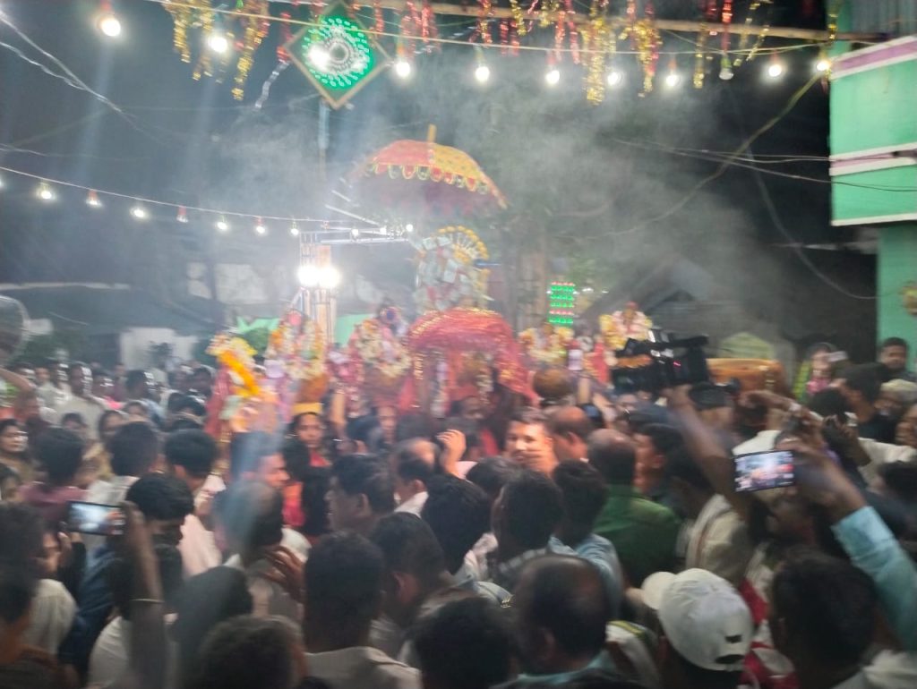 କୁକୁଡାଖଣ୍ଡି ::-ନବମ ଦିନରେ ପହଂଚିଛି କୁକୁଡାଖଣ୍ଡି ମା ଗୋସାମଣି ଙ୍କ ଠାକୁରାଣୀ ଯାତ୍ରା..ଆଉ ଦୁଇଦିନ ପରେ ଭକ୍ତିମୟ ପରିବେଶରେ ମାଙ୍କୁ ବିଦାୟ ଦେବେ ଗ୍ରାମବାସୀ..ମା ପ୍ରତିଦିନ ସାହି ସାହି ବୁଲି ଗ୍ରାମବାସି ଙ୍କ ଠୁ ଭୋଗ ପାଉଛନ୍ତି… ଭକ୍ତ ମାନେ ମାଙ୍କୁ ହଳଦୀ ପାଣି ରେ ଗୋଡ଼ ଧୋଇ ମାଙ୍କ ଆଶ୍ରିବାଦ ଲାଭ କରୁଛନ୍ତି.. ଯାତ୍ରା ସାରିବାକୁ ଆଉ ଦୁଇ ଦିନ ଥିବାବେଳେ ମିନବଜାର ଓ କଳାକୁଞ୍ଜ ଦେଖିବାକୁ ବିଭିନ୍ନ ସ୍ଥାନ ରୁ ବହୁ ଭକ୍ତ ଆସୁଛନ୍ତି..ଗୋପାଳପୂର ବିଧାୟକ ପ୍ରଦିପ ପାଣିଗ୍ରାହୀ ଏବଂ ପୂର୍ବତନ ମୁଖ୍ୟ ଶାସନ ସଚିବ ତଥା କଂଗ୍ରେସ ନେତା ବିଜୟ ପଟ୍ଟନାୟକ ମଧ୍ୟ ମାଙ୍କ ଗ୍ରାମପରିକ୍ରମା ବେଳେ ଦର୍ଶନ କରିଥିଲେ..ଏହି ଯାତ୍ରା ରେ କଳା କୁଞ୍ଜ ବେଶ ଆକର୍ଷଣୀୟ ପାଲଟିଛି l ବିଭିନ୍ନ ମାନସିକ ଧାରି ମାନେ ନାନାଦି ପ୍ରକାର ବେଶଭୁଷା ରେ ସୁସଜିତ ହୋଇ ମା ଙ୍କ ଠାରେ ନତ ମସ୍ତକ କରି ଆସୁଥିବା ଦେଖା ଦେଇଛି l ଏହି ଯାତ୍ରା ୫ ବର୍ଷ ଥରେ ହେଉଥିବା ରୁ ଲୋକେ ଜିଲ୍ଲା ଓ ବାହାର ରାଜ୍ୟ ରୁ ଆସି ମାଁ ଙ୍କ ଦର୍ଶନ କରି ବେଶ ଖୁସୀବ୍ୟକ୍ତ ହୋଇ ଥିବା ବେଳେ ମିନା ବଜ଼ାର ରେ ଚହଳ ସୃଷ୍ଟି କରିଛନ୍ତି l ଏହି ପରିଚାଳନା ରେ ସଭାପତି କାମାକ୍ଷା ପ୍ରସାଦ ପାତ୍ର, ମିଟୁ ଦଳାଇ, ବିସିସି ବ୍ୟାଙ୍କ ସଭାପତି ଶିବ ରାମ ପାତ୍ର, ଭବାନୀ ଶଙ୍କର ବିଶ୍ୱାଳ, ଅଦଲ ଚେନେୟା, ଗୋପାଳ ରାଓ ଦୋରା, ଶାକl ସୁଜିତ ପ୍ରମୁଖ ପରିଚାଳନା କରୁଥିବା ବେଳେ ସଦର ଥାନା ଏସଡିପିଓ ଶିବ ଶଙ୍କର ମହାପାତ୍ର, ଥାନା ଅଧିକାରୀ ମହେନ୍ଦ୍ର ସାହୁ ଏବଂ ଥାନା ର ବହୁ ପୋଲିସ କର୍ମଚାରୀ ଉପସ୍ଥିତ ରହି ଯାତ୍ରା ପରିଚାଳନା କରିଥିଲେ