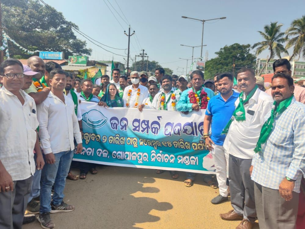 ଗୋପାଳପୁର,(ଅମିତ୍ କୁମାର ସାହୁ)୧୬/୧୧/୨୨: ବିଜେଡି ସୁପ୍ରିମୋ ତଥା ମୁଖ୍ୟମନ୍ତ୍ରୀ ନବୀନ ପଟ୍ଟନାୟକଙ୍କ ନିର୍ଦ୍ଦେଶକ୍ରମେ ରାଜ୍ୟରେ ଦୀର୍ଘ ଦେଢ଼ ମାସ ଧରି ଜନ ସମ୍ପର୍କ ପଦଯାତ୍ରା ଚାଲିଛି । ଏହି ପରିପ୍ରେକ୍ଷୀରେ ଗୋପାଳପୁର ନିର୍ବାଚନ ମଣ୍ଡଳୀର ରଙ୍ଗେଇଲୁଣ୍ଡା ବ୍ଲକ ବିଜେଡି ପକ୍ଷରୁ ଗୋପାଳପୁର ଏନଏସି ଏବଂ ବକ୍ସିପଲ୍ଲୀରେ ବୁଧବାର ଜନସମ୍ପର୍କ ପଦଯାତ୍ରା ଅନୁଷ୍ଠିତ ହୋଇଥିଲା । ଏଥିରେ ମୁଖ୍ୟ ଅତିଥି ଭାବେ ଯୋଗ ଦେଇଥିବା ମୁଖ୍ୟମନ୍ତ୍ରୀଙ୍କ ରାଜନୈତିକ ସଚିବ ଡ଼ା. ଗୋପବନ୍ଧୁ ଦାଶଙ୍କୁ ଗୋପାଳପୁର ଏନଏସିରେ ପୁଷ୍ପଗୁଚ୍ଛ ଦେଇ ସ୍ୱାଗତ କରାଯିବା ପରେ ଶ୍ରୀ ଦାଶ ଉକ୍ତ ପଦଯାତ୍ରା କାର୍ଯ୍ୟକ୍ରମକୁ ଶୁଭାରମ୍ଭ କରିଥିଲେ । ଅନ୍ୟମାନଙ୍କ ମଧ୍ୟରେ ଗୋପାଳପୁର ଏନଏସି ଅଧ୍ୟକ୍ଷ ଏ.ଜାନକୀ ରାମ,ବ୍ରହ୍ମପୁର ଡେପୁଟି ମେୟର ଇ.ବିବେକ ରେଡି,ଜିଲାପରିଷଦ ଉପାଧ୍ୟାକ୍ଷା ଏସ. ରାଜେଶ୍ୱରୀ ଦୋରା,ବ୍ଲକ ସଭାପତି ଅଜିତ ଦାଶ,ଜିଲ୍ଲା ପରିଷଦ ଦୀପକ କୁମାର ସାମନ୍ତ ପୂର୍ବତନ ଜିଲ୍ଲା ପରିଷଦ ସଭ୍ୟ ଶଶିଭୂଷଣ ମହାନ୍ତି ,ସମାଜସେବୀ ସନ୍ତୋଷ ପାତ୍ର,ରାମହରୀ ପାତ୍ର ଅତିଥି ଭାବେ ପଦଯାତ୍ରାରେ ସାମିଲ ହୋଇ ସାହି ସାହି ପରିକ୍ରମା କରିସ୍ଥାନୀୟ ଅଞ୍ଚଳରେ ଥିବା ବହୁ ମନ୍ଦିରରେ ପୂଜାର୍ଚ୍ଚନା କରି ଗୋପାଳପୁର ବସଷ୍ଟାଣ୍ଡ ନିକଟରେ ପହଞ୍ଚି ସେଠାରେ ଉକ୍ତ ପଦଯାତ୍ରାକୁ ସମାପ୍ତ କରିଥିଲେ କରିଥିଲେ । ପରେ ବକ୍ସିପଲ୍ଲୀ ସରପଞ୍ଚ ସରପଞ୍ଚ ଏ.ନାର୍ସିଙ୍ଗୁଲ୍ଲୁ ଓ ସମିତି ସଭ୍ୟ ଜୟସେନ ସାହୁଙ୍କ ନେତୃତ୍ୱରେ ଆୟୋଜିତ ପଦଯାତ୍ରାରେ ମୁଖ୍ୟମନ୍ତ୍ରୀଙ୍କ ଓଏସଡି ଡ଼ା ଗୋପବନ୍ଧୁ ଦାସ ଯୋଗ ଶହଶହ କର୍ମୀଙ୍କ ସହ