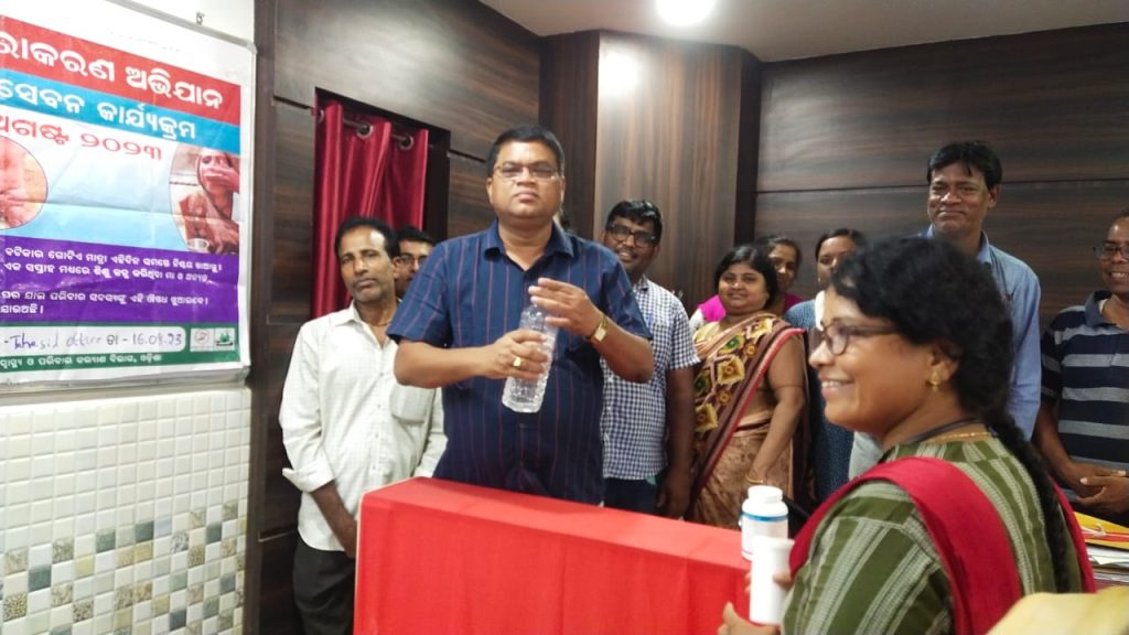 ଅତିରିକ୍ତ ତହସିଲଦାର ସୁନୀଲ କୁମାର ଟୁଡୁ, ଏନଏସି ଅଧ୍ୟକ୍ଷା’ ପ୍ରିୟଙ୍କା ଗୌଡ଼, କାର୍ଯ୍ୟନିର୍ଭାହୀ ଅଧିକାରୀ ସୌମ୍ୟ ରଞ୍ଜନ ମିଶ୍ର, କାଉସିଲର ଅଶୋକ କୁମାର ମହାଙ୍କୁଡଙ୍କୁ ସାମୁହିକ ଔଷଧ ସେବନ କରାଇବା ପରେ ଏହି କାର୍ଯ୍ୟକ୍ରମକୁ କିପରି ସଫଳ ରୂପାନ୍ତରିତ ହୋଇପାରିବ ସେଥିପାଇଁ ଜନସାଧାରଣ ମାନଙ୍କୁ ଫାଇଲେରିଆ ନିରାକରଣ ନିମନ୍ତେ ସାମୂହିକ ଔଷଧ ସେବନ କରି ଫାଇଲେରିଆ କୀଟାଣୁକୁ ନଷ୍ଟ କରିବା ପାଇଁ ସାମୂହିକ ଔଷଧ ସେବନର ଆବଶ୍ୟକତା ଉପରେ ଜନସାଧାରଣଙ୍କୁ ସଚେତନତା କରେଇବାକୁ ଜନପ୍ରତିନିଧି