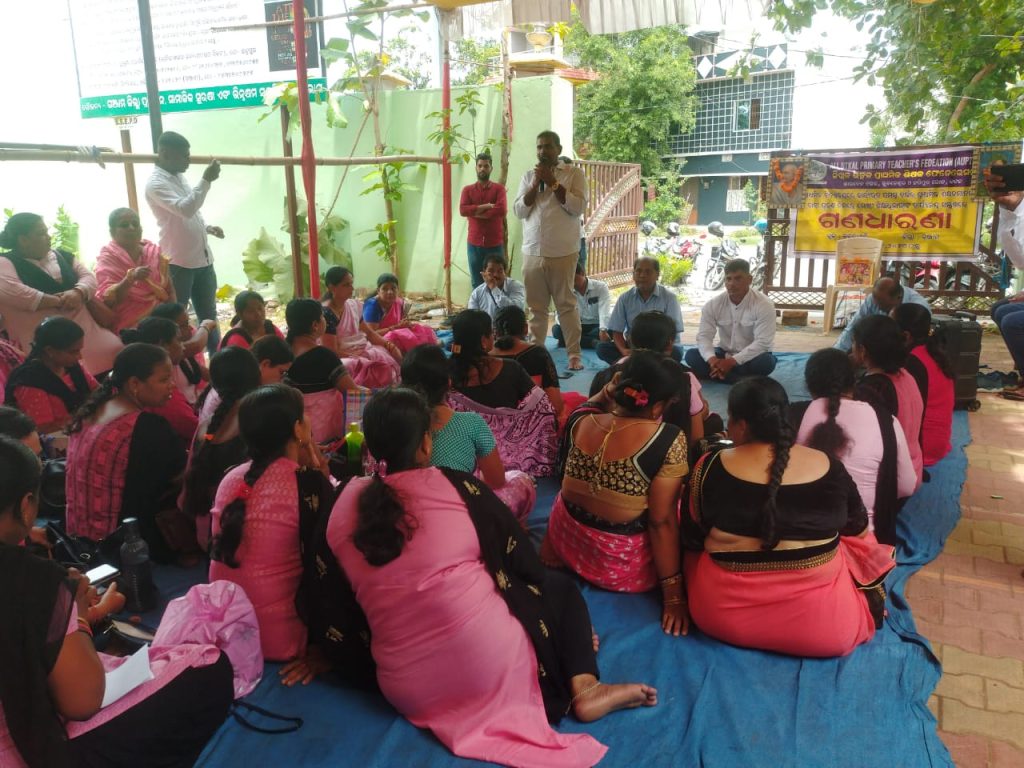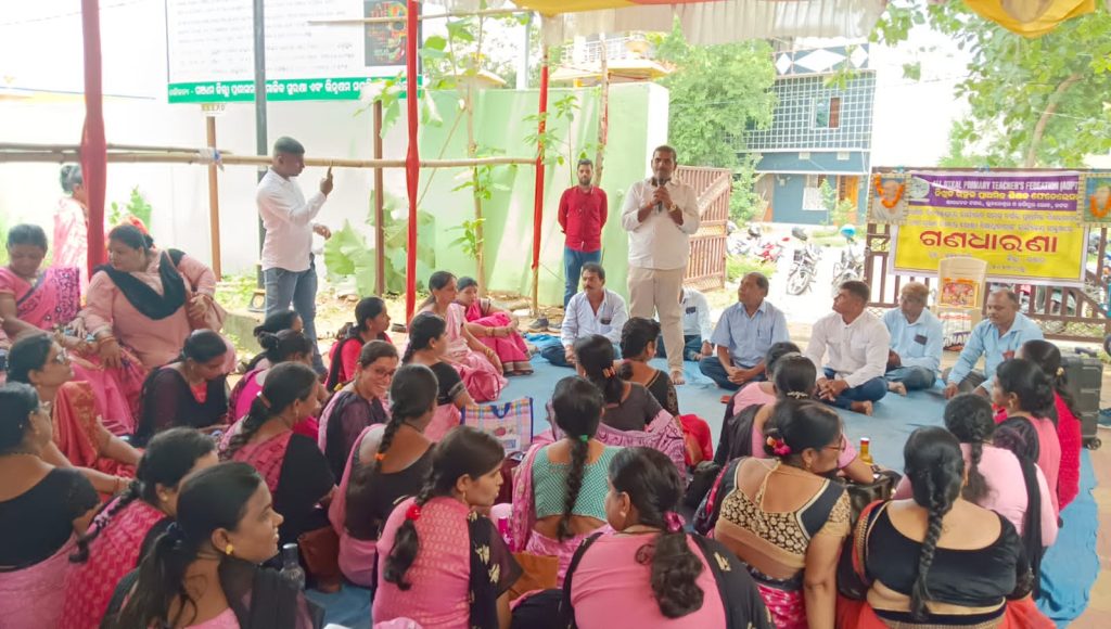ଦାବିପୂରଣ ନହେବାରୁ ବ୍ଲକ୍ ଶିକ୍ଷାଧିକାରୀଙ୍କ କାର୍ଯ୍ୟାଳୟ ସମ୍ମୁଖରେ ଶିକ୍ଷକ ଶିକ୍ଷୟିତ୍ରୀମାନେ ସଭାପତି ସାରଥୀ ପାତ୍ରଙ୍କ ଅଧ୍ଯକ୍ଷତାରେ ଧାରଣା ଦେଇ ଦାବିପୂରଣ ପର୍ଯ୍ୟନ୍ତ କାର୍ଯ୍ୟବନ୍ଦ ଆନ୍ଦୋଳନ ଜାରିରଖିଛନ୍ତି । କଂଗ୍ରେସ ନେତା ସାଖା ସୁଜିତ କୁମାର, ଦିଲ୍ଲୀପ କୁମାର ପାତ୍ର ପ୍ରମୁଖ ଉପସ୍ଥିତ ରହି ଶିକ୍ଷକଙ୍କ ଆନ୍ଦୋଳନ କୁ ସମର୍ଥନ କରି ସେମାନଙ୍କ ଧାରଣାରେ ଯୋଗଦେଇ ରାଜ୍ୟ ସରକାର କରୁଥିବା ଶିକ୍ଷକ ମାନଙ୍କ ପ୍ରତି ପାତରଅନ୍ତର କୁ ବିରୋଧ କରିବା ସହ ପୁରୁଣା ପେନସନ ଲାଗୁକରିବା କୁ ଦାବି ରଖିଥିଲେ ।