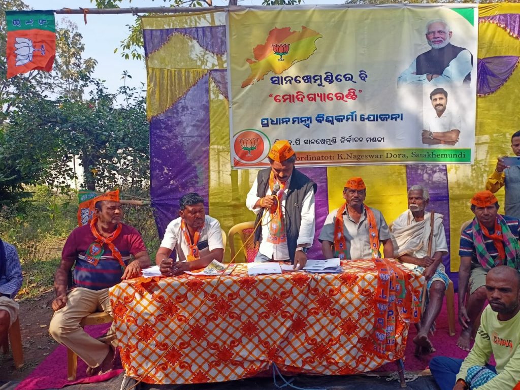 ଗଞ୍ଜାମ,୨୯/୧ସାନଖେମୁଣ୍ଡି ବ୍ଲକ୍ ଅନ୍ତର୍ଗତ କଲରାପଦର ପଞ୍ଚାୟତର ଭୁଡ଼ିକି ଗ୍ରାମ ଶିବ ମନ୍ଦିର ପରିସରରେ ସାନଖେମୁଣ୍ଡି ବିଜେପି ସଂଯୋଜକ କେ ନାଗେଶ୍ଵର ଦୋରାଙ୍କ ସଂଯୋଜନାରେ ମୋଦି ଗ୍ୟାରେଣ୍ଟି ବିଶ୍ଵକର୍ମା ଯୋଜନା ସଚେତନତା ଶିବିର ଅନୁଷ୍ଠିତ ହୋଇଯାଇଛି ।