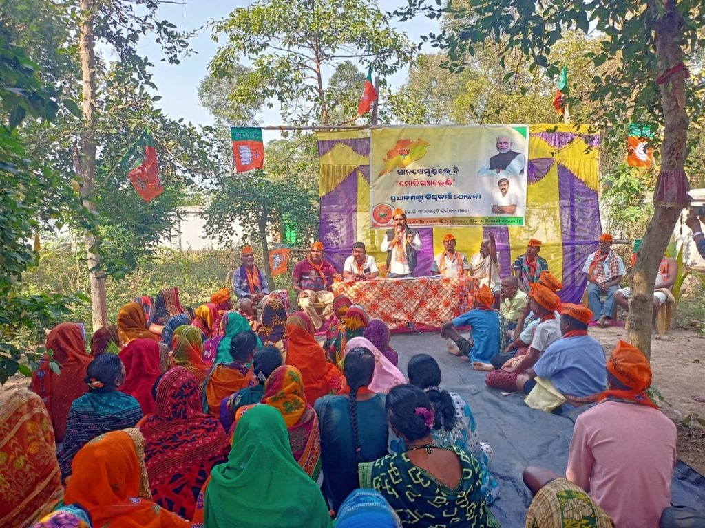 କେନ୍ଦ୍ର ସରକାରଙ୍କ ଖାଦ୍ୟ ସୁରକ୍ଷା ଯୋଜନାରେ ବିନା ମୂଲ୍ୟରେ ଚାଉଳ ମିଳୁଥିବା ବେଳେ ପ୍ରଧାନମନ୍ତ୍ରୀ ଆବାସ ଯୋଜନାରେ ଗରିବ ପରିବାର ସାମିଲ ହେବା ପାଇଁ ପରାମର୍ଶ ଦେଇଥିଲେ। ପଞ୍ଚାୟତ ସ୍ତରରୁ ଏକତ୍ରିତ ହୋଇଥିବା ଶତାଧିକ ମହିଳାଙ୍କ ସହ ବହୁ ଶ୍ରମିକ ଏବଂ କୃଷି ଶ୍ରମିକଙ୍କ ସମାବେଶରେ ମୋଦି ସରକାରଙ୍କ ସଫଳତା ବାର୍ତା ପ୍ରଚାର କରାଯାଇଥିବା ବେଳେ ମୋଦି ସରକାର ଭାରତ ବାସୀଙ୍କ ସହଯୋଗ ଏବଂ ଦାନ ଅର୍ଥରେ ଅଯୋଧ୍ୟାରେ ରାମ ମନ୍ଦିର ନିର୍ମାଣ କରି ସନାତନ ଧର୍ମ ସୁରକ୍ଷା କରିଥିବା ବୈଠକରେ ମତ ପ୍ରକାଶ କରିଛନ୍ତି।କାର୍ଯ୍ୟକ୍ରମରେ ଅନ୍ୟମାନଙ୍କ ମଧ୍ୟରେ ବିଭୁ ପ୍ରସାଦ ରେଡ୍ଡୀ , ଜାଗା ପ୍ରଧାନ , ଅଙ୍ଗଦ ମହାନ୍ତି , କୁରେଶୁ ଦୋରା ହିରନ୍ୟ ଭାଇ ପ୍ରମୁଖ ମଞ୍ଚାସୀନ ରହି କାର୍ଯ୍ୟକ୍ରମ ପରିଚାଳନା କରିଥିଲେ ।